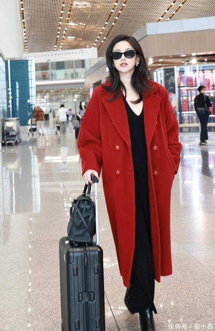 新年的大衣穿搭该怎么穿?朱珠这身机场造型给出了满分答案。41 岁的她身着一袭正红色长款大衣,内搭全黑针织套装,在机场明亮的灯光下,既有着节日的热烈感,又透着毫不费力的高级感,直接带火了 “红黑配” 这一新年穿搭公式。