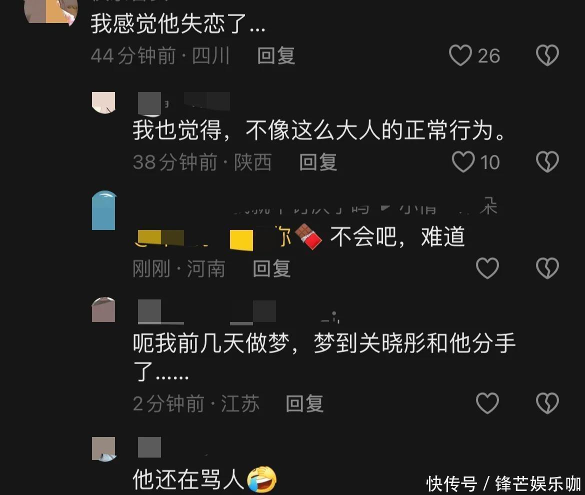 所以有很多网友都觉得他是受了什么精神刺激,再加上他长期不和关晓彤互动,就产生了分手传闻。但毕竟两人并没有公开到底分手没有,所以现在只能说他们俩都在忙着自己的事业谈情说爱的事情就暂时放在一边了。