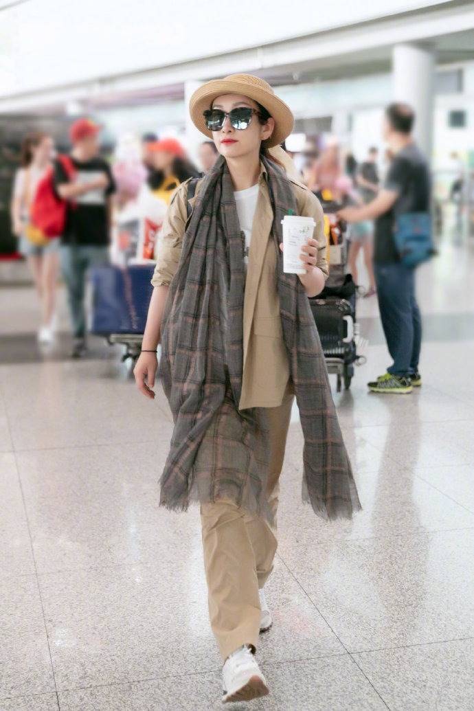 日常搭配中,秦海璐造型偏休闲。比如她用棕色西装搭配棕色工装裤,简约大方,再加上围巾和帽子,丰富造型,尽显时髦气质。