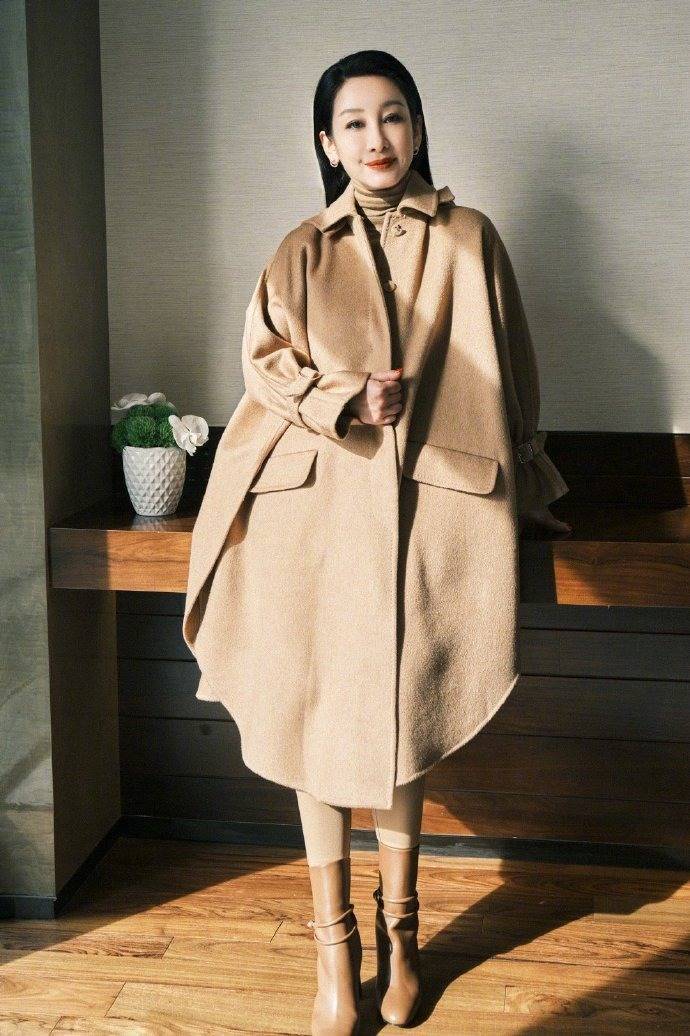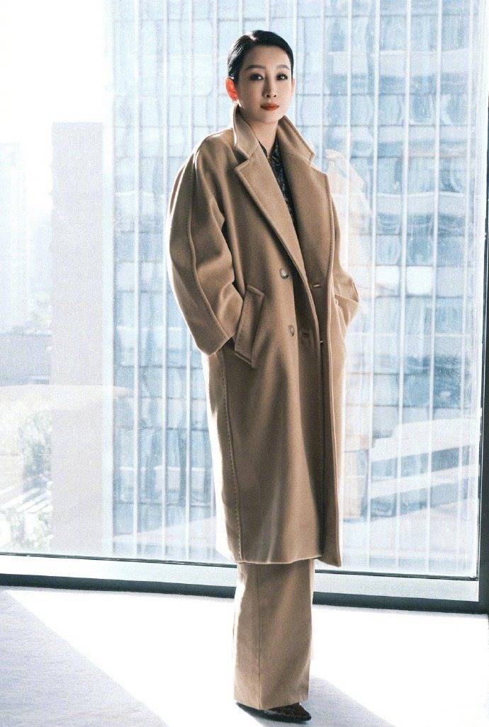 秦海璐虽年纪渐长,但气场强大。此次搭配的驼色大衣采用廓形设计,版型宽松,穿在身上尽显潇洒魅力,还能不经意间提升个人气场,无论是日常出行还是参加活动,都可以尝试。